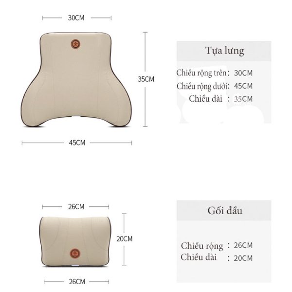 - Bộ gối tựa đầu và lưng ô tô được sản xuất với kích thước tiêu chuẩn phù hợp với dáng người Á Đông.
